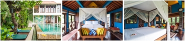 The Guesthouse is fully air conditioned. The bedroom sleeps 2 persons with a king size bed, kalumbu (mosquito net). The separate dressing room adjoins a stunning terrazzo "outdoor" en-suite bathroom. Colourful Balinese style furnishings and art work combined with comfortable sitting/reading chairs blend the decor. The room is equipped with mini bar, water jug, cable television, dvd, free wifi and safety deposit box. You will also have the use of a maid / butler to look after you for your entire stay. Full American Breakfast, tea, coffee and Airport Transfers are included.